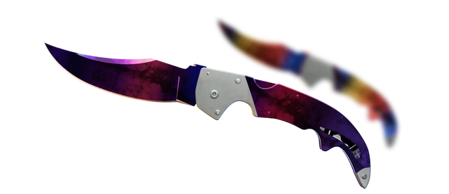 The handle of the Falchion knife is pretty big, as it has been designed for tight grip. The blade looks somewhat smaller compared to other CS2 knives. Still, it’s as effective in the real world—very sharp, with a deadly curve. The Falchion knife was added to Counter-Strike with the Operation Bloodhound update. Its in-game animation has two variants: the usual one and balancing of the knife vertically.